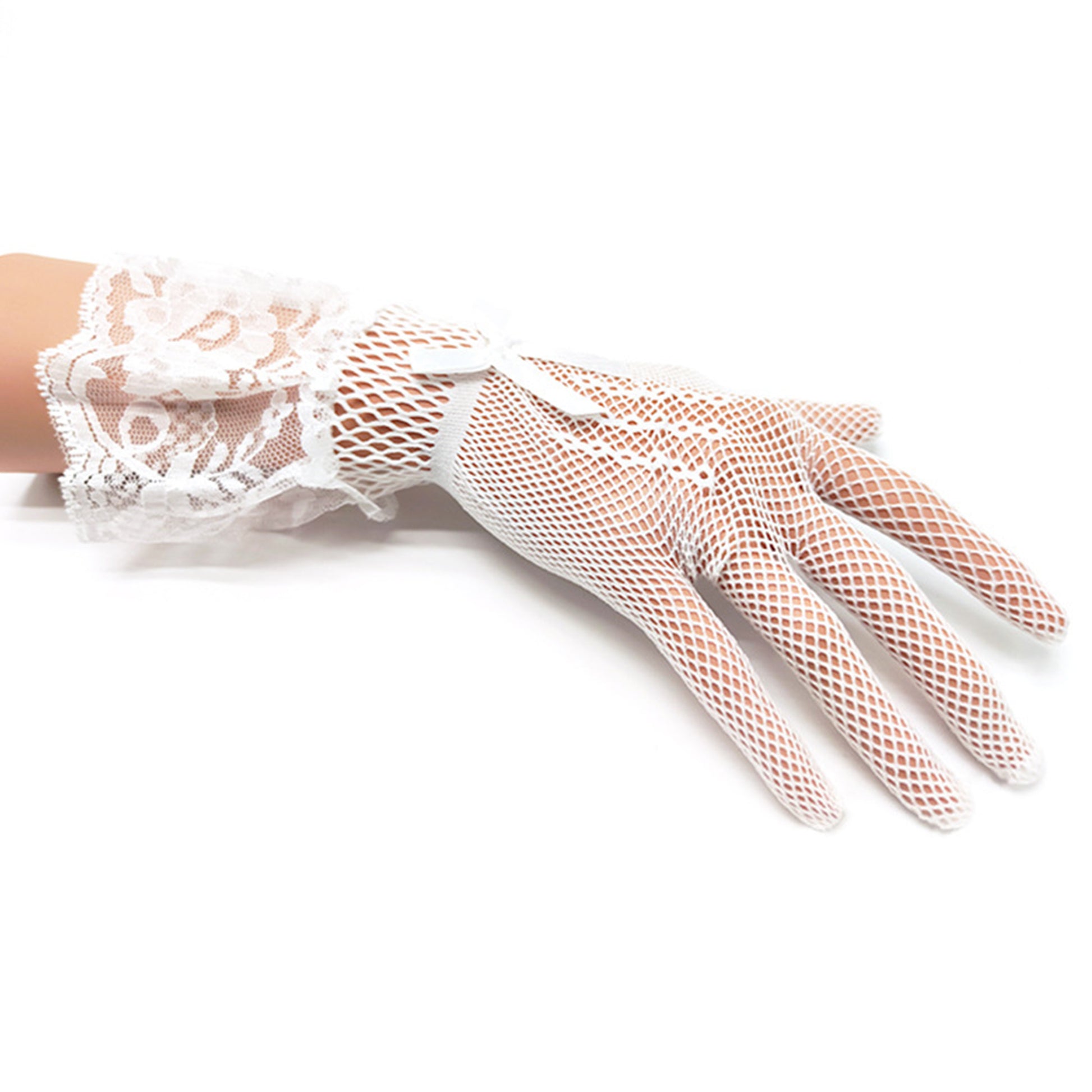 Floral Lace Bow Cuff Fishnet Mesh Wrist Gloves
